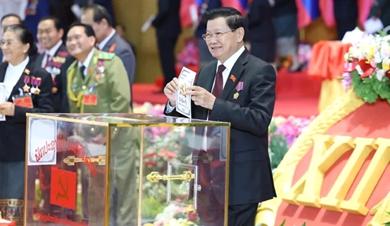 Xi greets Thongloun on his reelection as Lao party chief