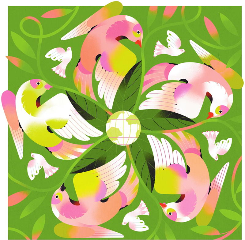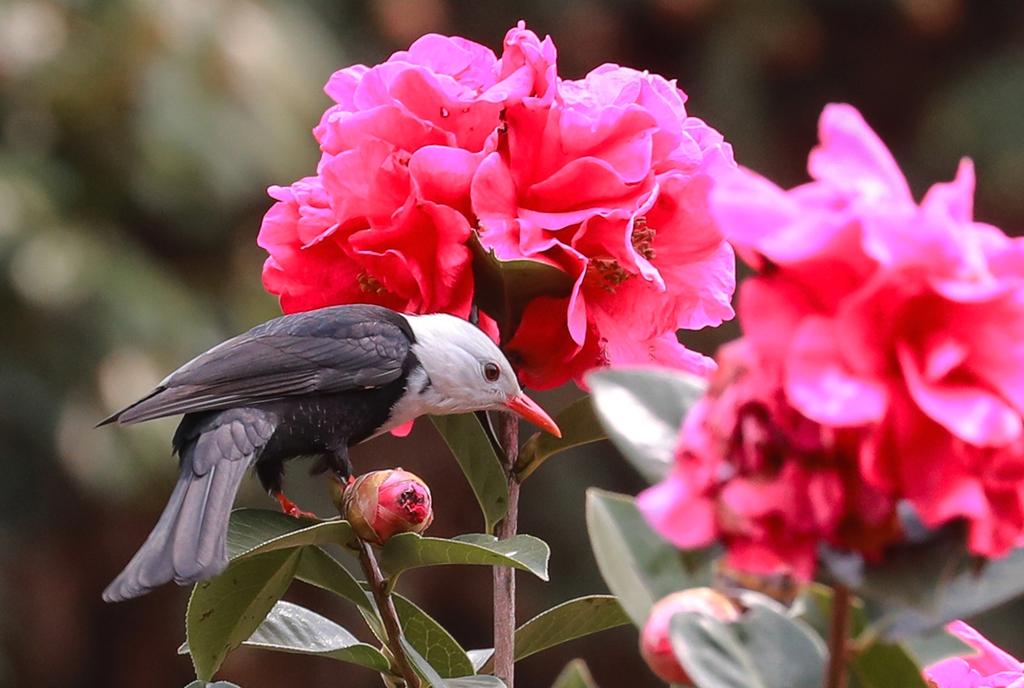 Birds revel in the beauty of camellia flowers in Yunnan
