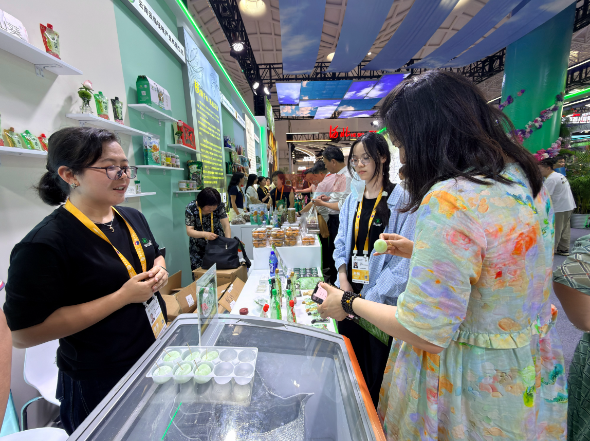 Yunnan Yunliaoyu Health Industry Co., Ltd. has been an attraction at the expo for its products made from native plant shells. Wu Shengyu, the company's brand manager, said that these products integrate Yunnan's natural elements with creative design.