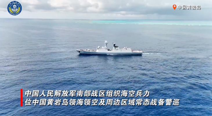 โดยเกาะหวงเอี๋ยนเป็นดินแดนของจีนมาตั้งแต่สมัยโบราณ นับแต่ต้นเดือนมีนาคมเป็นต้นมา กองบัญชาการภาคใต้ของกองทัพปลดปล่อยประชาชนจีนจัดกำลังพลทางทะเลและทางอากาศลาดตระเวนเพื่อเตือนภัย และเตรียมพร้อมรบที่น่านน้ำ น่านฟ้าและบริเวณโดยรอบเกาะหวงเอี๋ยนอย่างต่อเนื่อง ดำเนินการติดตามสังเกตการณ์และเตือนภัยขับไล่ รับมือกับพฤติกรรมการละเมิดสิทธิ์และการยั่วยุอย่างมีพลังและประสิทธิภาพ พิทักษ์อธิปไตยและความปลอดภัยแห่งชาติอย่างเด็ดขาด รักษาสันติภาพและความมั่นคงในภูมิภาคทะเลจีนใต้อย่างแน่วแน่