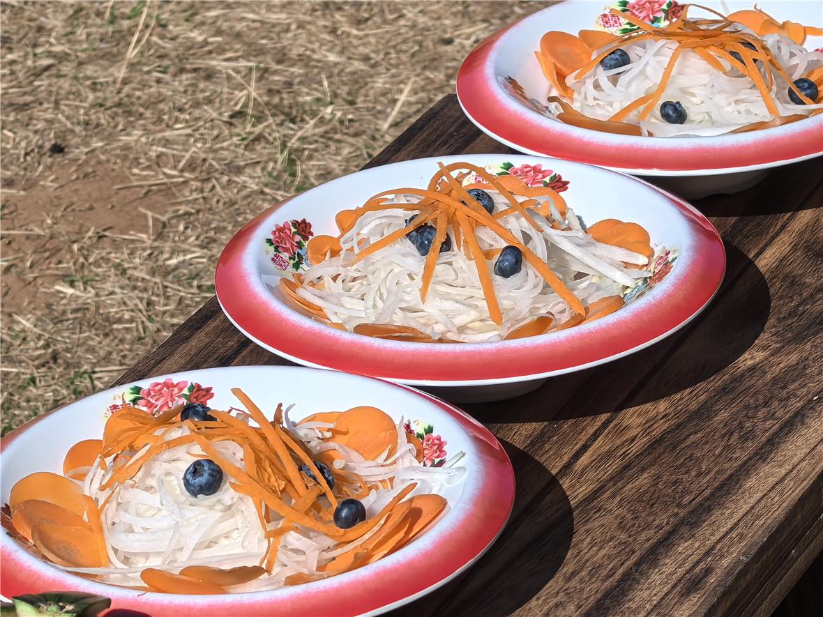 针对园中身姿优雅、羽色艳丽的孔雀,工作人员精心打造了一场专属的“春日长街宴”,用香椿、金雀花、橙子、圣女果、花饭等食材,细致摆出了一道色香俱全的“孔雀宴”。对于机灵俏皮的小浣熊,饲养团队则特意准备了软糯香甜的“彩色馒头”、清香四溢的特色花饭,还有用白萝卜与胡萝卜巧妙制成的“凉米线”。所有食材均经过严格筛选,充分兼顾小浣熊的肠胃特点,既美味又健康。
