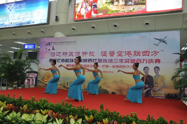 9月1日,德宏芒市机场旅客吞吐量实现100万余人次,连续3年旅客吞吐量突破百万,标志着芒市机场迎来新的飞跃。