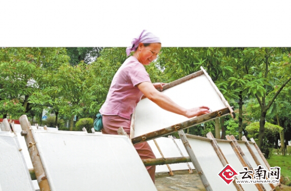 据“傣影手工艺术有限公司”经理艾影介绍,芒团自然村有造纸专业户63户,年产白棉纸100多万张,产值约200万元。年收入最高的达6万元,年收入3至5万元的居多,收入最低的也在万元以上。
