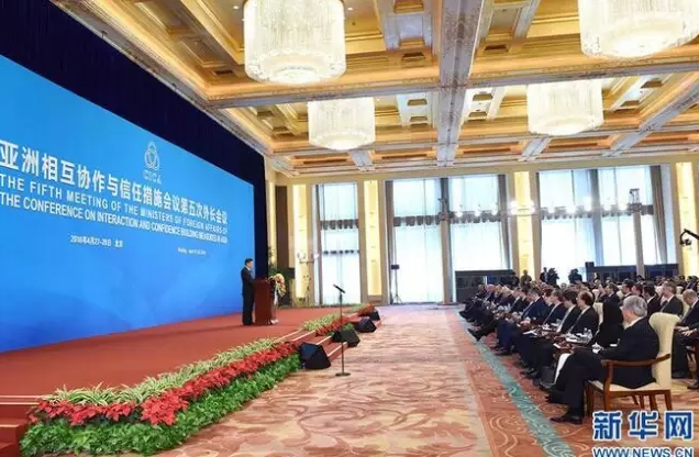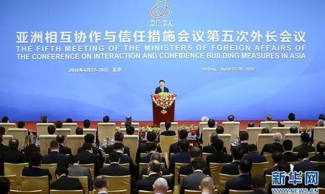 4月28日,亚洲相互协作与信任措施会议第五次外长会议在北京开幕。国家主席习近平出席开幕式并发表题为《凝聚共识 促进对话共创亚洲和平与繁荣的美好未来》的重要讲话。 新华社记者庞兴雷摄
