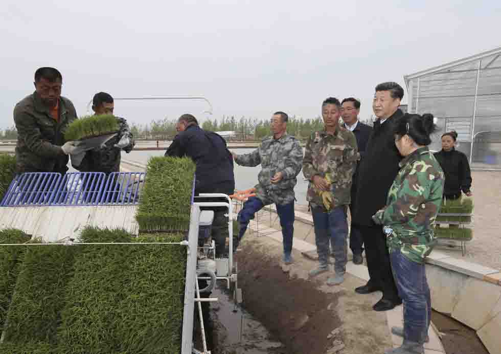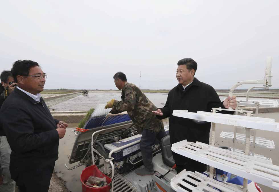 国际在线消息:24日上午,习近平来到黑龙江省抚远市玖成水稻种植专业合作社,了解合作社土地流转和采用先进种植技术提高水稻产量效益等情况。总书记登上一台自动插秧机,手扶方向盘,察看仪表盘,询问技术人员机械的工作原理、购买价格、插秧效率等。在快速育秧车间,农技人员介绍利用快速育秧设备进行超早育秧,提升稻米品质情况。总书记问:“这里种植什么品种?”“快速育苗产量能提高多少?”总书记问几位农民,合作社是什么时候成立的,土地流转后收入怎么样,还有什么打算。习近平说,黑龙江作为农业大省,保障国家粮食安全功不可没。在此基础上,要注重经济多元化发展,让农民生活水平不断提高。