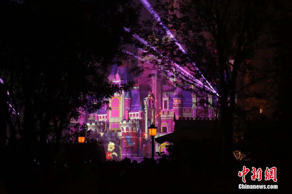 5月29日晚,上海迪士尼上演“夜光幻影秀”,绚丽的灯光与烟花将迪士尼城堡点缀得格外美丽,让观众大饱眼福。中新社记者 汤彦俊 摄