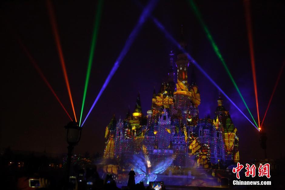 5月29日晚,上海迪士尼上演“夜光幻影秀”,绚丽的灯光与烟花将迪士尼城堡点缀得格外美丽,让观众大饱眼福。中新社记者 汤彦俊 摄