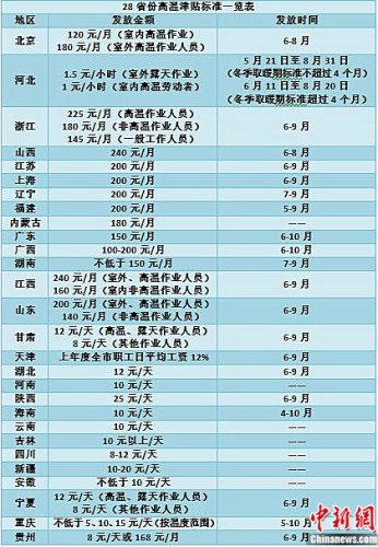 28省份明确高温津贴标准