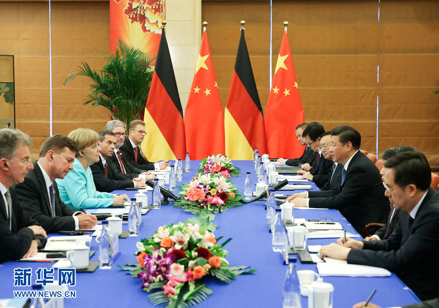 6月13日,国家主席习近平在北京会见德国总理默克尔。 新华社记者刘卫兵 摄