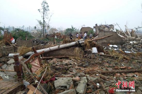 6月23日,江苏省盐城市阜宁县突遭强冰雹、龙卷风双重灾害袭击,已致51人死亡、多人受伤。图为阜宁县吴滩镇立新村遭遇龙卷风袭击后一片狼藉。中新社记者 谷华 摄