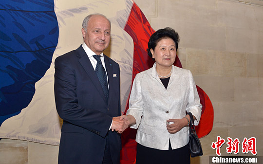 中新社巴黎6月29日电 (记者 龙剑武)中国国务院副总理刘延东29日在巴黎法国宪法委员会会见法国宪法委会主席法比尤斯。