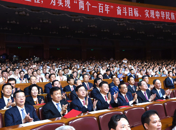 中共中央、全国人大常委会、国务院、最高人民法院、最高人民检察院、全国政协、中央军委领导同志观看音乐会。