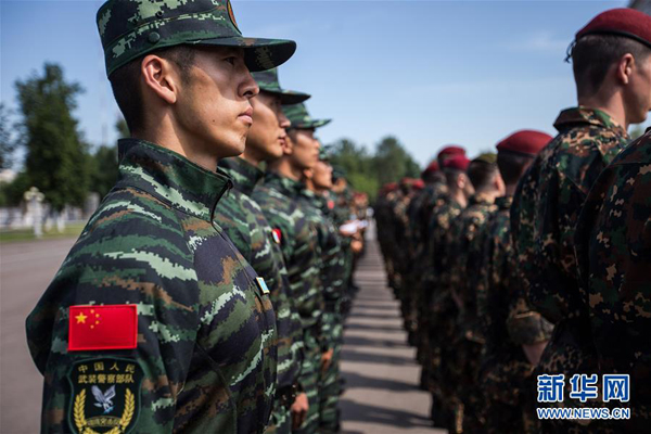 7月3日,在俄罗斯首都莫斯科,中方参训人员列队。