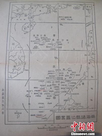 《南海诸岛地理志略》中的1947年中国《南海诸岛位置略图》 应妮 摄