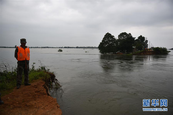 湖北黄梅县考田河堤出现溃口 数千人紧急转移