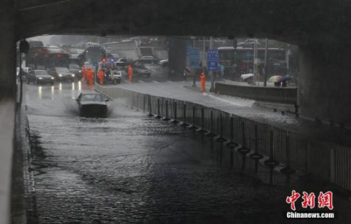 7月20日,北京会城门桥下积水严重。中新社记者 张浩 摄