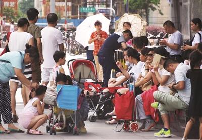 南京迎来高温天,商场前聚集着等待开门后进去纳凉购物的市民。新华报业视觉中心记者 葛讯 摄