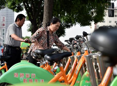 市民在太原市一处公共自行车租赁点取车 詹彦摄