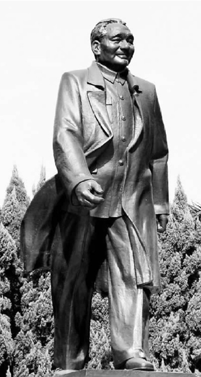 塑像高6米,重6吨。主体塑像属硅青铜材质,钢筋混凝土底座以花岗岩石包封。塑像中,小平同志身披风衣,极目远方,器宇轩昂,步伐坚实,蕴含着小平同志“要把改革开放的步子迈得再大些”的政治思想,展现出了不平凡的伟人气质。