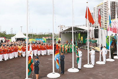 中国体育代表团举行升旗仪式