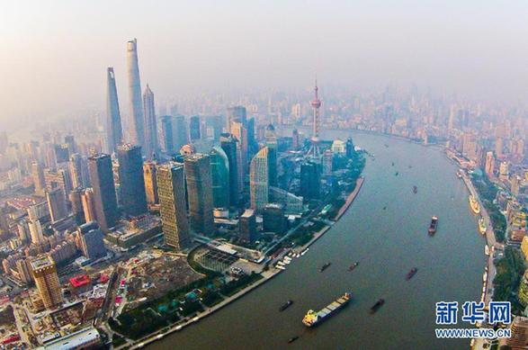 航拍陆家嘴金融城地标——上海中心、上海环球金融中心、金茂大厦、东方明珠(2015年10日12日摄)。新华社发(沈春琛 摄)