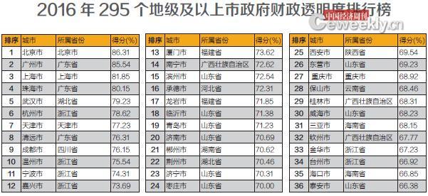 295个地级及以上市政财政透明排行榜:北上广居前三