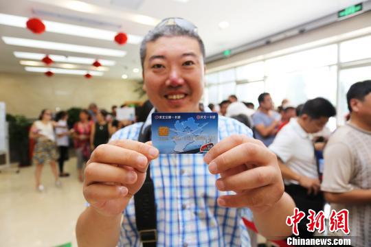 中新网廊坊8月11日电 (宋敏涛 陈正张泰源)“终于等到了一卡通,以后去北京乘车、购物,一张卡就能解决,走遍全国都不叫事儿,真方便!”11日上午,“河北交通一卡通”正式面向廊坊市民发售,当天共发行办理718张“一卡通”,该市首张“一卡通”被市民张华幸运的领取。