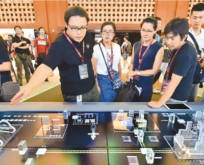 图为参观者在参观网络安全企业的展台。