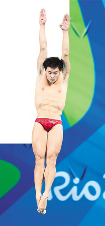 向前翻腾4周半抱膝109C,难度高达3.8,完美入水,96.90!曹缘锁定胜局,为中国队收复了伦敦奥运会旁落的男子三米板金牌,不辱使命。