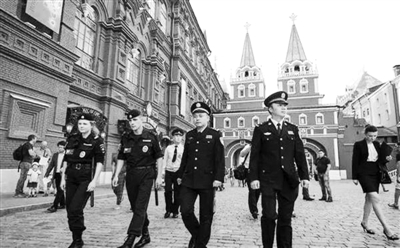中国旅游警察与莫斯科旅游警察在红场。 图片来自网络