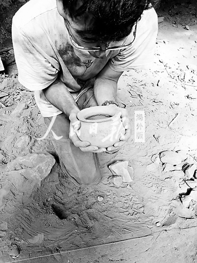 辛苦劳作过后,最终的发现往往可以成为慰藉考古队员们的最好礼物。考古需要极为小心和谨慎,而选修这门课的同学,主要做的工作就是挖土。最开始可以用铲子、大锤子之类的工具清理碎石,等到挖得越深,越接近文物的时候,需要拿刮刀一毫米一毫米地剥削:“因为什么陶瓷啊、腿骨啊、肋骨啊都是十分脆弱的。”王凯强说(右上图)。
