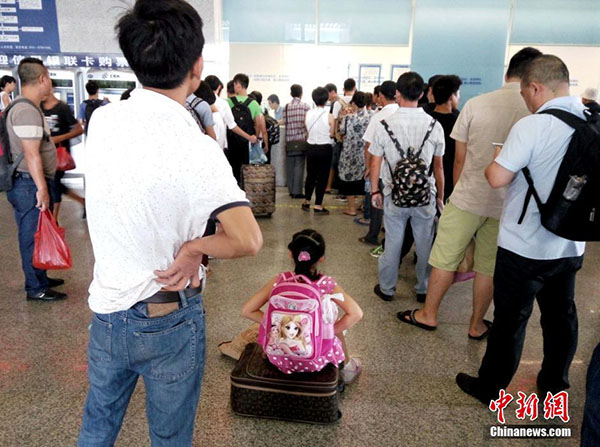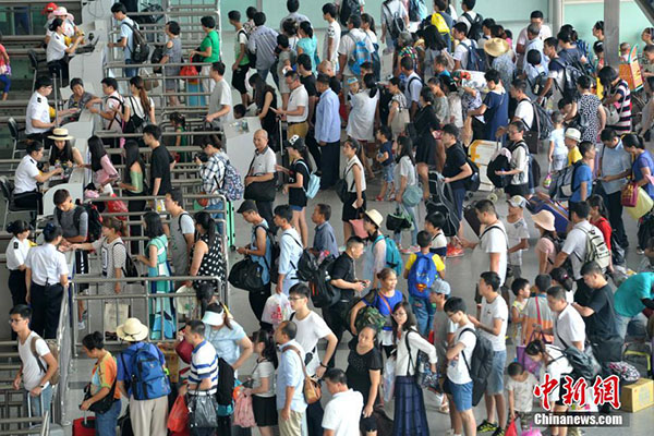 中国各地迎暑运返程高峰 火车站进站口排长队