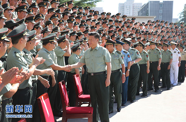 8月29日上午,中共中央总书记、国家主席、中央军委主席习近平视察战略支援部队机关,代表党中央和中央军委,对战略支援部队第一次党代表大会的召开表示热烈的祝贺,向战略支援部队全体指战员致以诚挚的问候。这是习近平亲切接见战略支援部队第一次党代表大会代表。新华社记者李刚摄