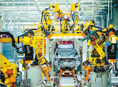 成都神龙汽车工厂,机器人正在生产线上作业。