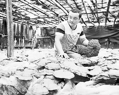图为日前贵州省天柱县坪地镇八界村药材种植大户抢晴天采摘灵芝晒秋。当天,灵芝入库4吨多。如今,大健康产业已成为贵州助农致富新路子。