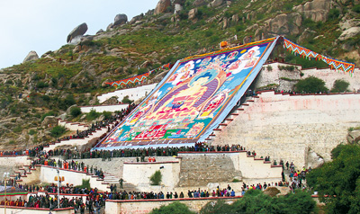 9月1日是一年一度西藏拉萨雪顿节的第一天,拉萨哲蚌寺举行盛大的展佛活动,吸引数十万人前来参观膜拜。