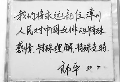“我们将永远记住漳州人民对中国女排的特殊感情、特殊理解、特殊支持。”这是郎平在训练基地的一则深情留言。