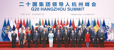 二十国集团成员和嘉宾国领导人、有关国际组织负责人集体合影。
