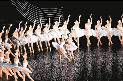 一曲古琴、中国鼓与大提琴的对话,呈现了中西合璧的《高山流水》,传递出中国与世界各国相知相近的美好寄望;水上芭蕾舞表演《天鹅湖》将虚拟成像和真人表演完美结合,优雅的舞者穿梭于银河流光般的古桥之下,令人赞叹不已。