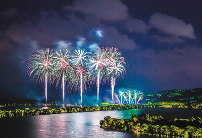 以天为幕、以桥为景、以湖为台,各方来宾置身于湖光山色中,聆听经典名曲,观看水上歌舞,感受中国神韵与世界文化的交融与对话。