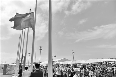 9月5日,里约残奥会中国体育代表团在里约残奥村举行升旗仪式。