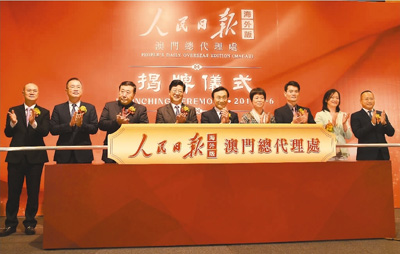 本报澳门9月6日电 (记者苏宁)人民日报海外版澳门总代理处揭牌仪式今天在此间举行。澳门社会文化司司长谭俊荣、新闻局局长陈致平以及澳门基金会、澳门中联办、外交公署等机构代表,以及澳门各界人士150多人出席并见证了海外版与澳门中澳金控集团共同举办的揭牌仪式。