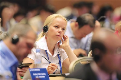 2016“一带一路”媒体合作论坛上,外宾聆听中国声音。