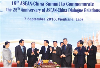 据新华社万象9月7日电(记者周舟、陈二厚)国务院总理李克强当地时间7日上午在万象国家会议中心同东盟国家领导人共同出席中国-东盟建立对话关系25周年纪念仪式。