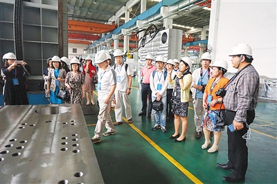 图为海外华媒记者在广东佛山采访传统制造企业转型。