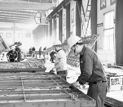 北京至沈阳客运专线中铁二十二局集团北京巨各庄制板场,日前一次性通过国家生产许可认证审查,已具备规模化生产高速铁路新型无砟轨道板的能力。这种无砟轨道板具有完全自主知识产权,是我国高铁无砟轨道技术实现国产化的重要标志。图为制板厂生产场景。