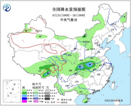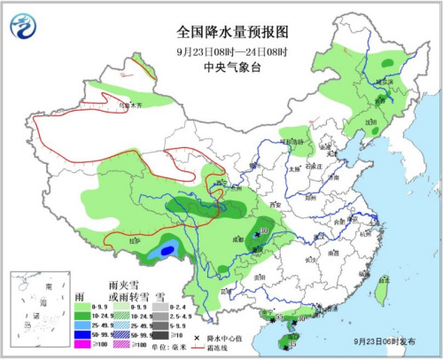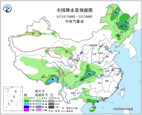 图1 全国降水量预报图(9月23日08时-24日08时)