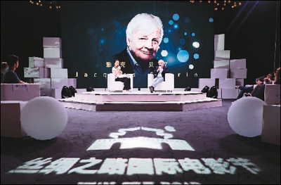 图为九月二十三日,曾执导《迁徙的鸟》《海洋》等影片的著名法国导演雅克·贝汉亮相电影节。