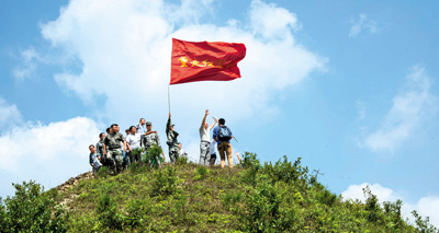 日前,贵州省黔东南苗族侗族自治州从江县50余名党员干部职工来到该县加鸠镇长牛村,参与纪念红军长征胜利80周年“重走长征路”活动,体验红军当年的艰辛,感受先烈们艰险的战斗历程及村民对红军的爱戴,进一步增强爱国热情,坚定理想信念。图为活动现场。