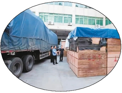图为查获的内装高附加值程控交换机和二手摩托车的货车。